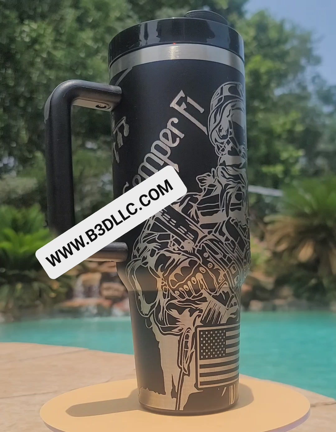 40 oz Powder Coated Stainless Steel Laser Engraved Tumbler with Handle. Silicone...